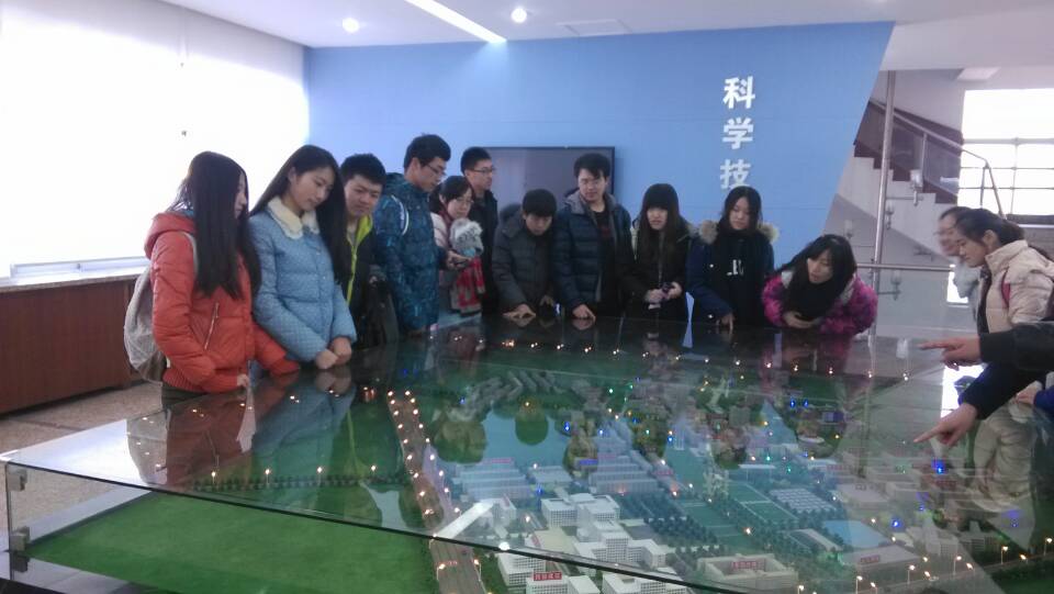 的磅礴之势尽收眼底,同学们也在全景建筑模型前合影留念。
