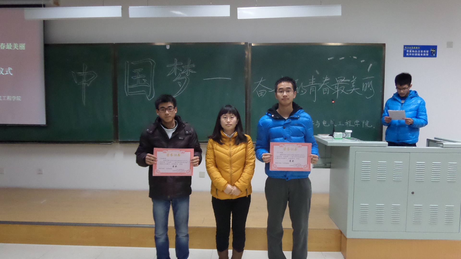 团委组织开展以“认识吉大之真 感受吉大之善 欣赏吉大之美”为主题的青春励志系列活动。2013年12月3日,2013级测控专业三班在中心校区李四光楼306教室举行了“奋斗的青春,我们在路上”的主题班会活动,2013级三班班导师辛毅副教授、院团委副书记兼2012级辅导员蔡印老师及2013级全体同学参加此次活动。
