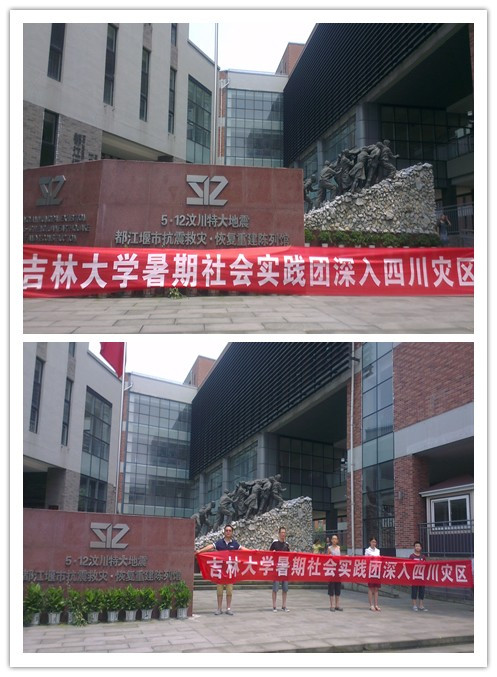 大学生社会实践团在院团委负责人朱宇的带领下深入“5•12”四川汶川特大地震重灾区都江堰市,集体参观了都江堰市抗震救灾•恢复重建陈列馆,深刻学习了伟大的抗震救灾精神,见证了灾区的重建发展历程。