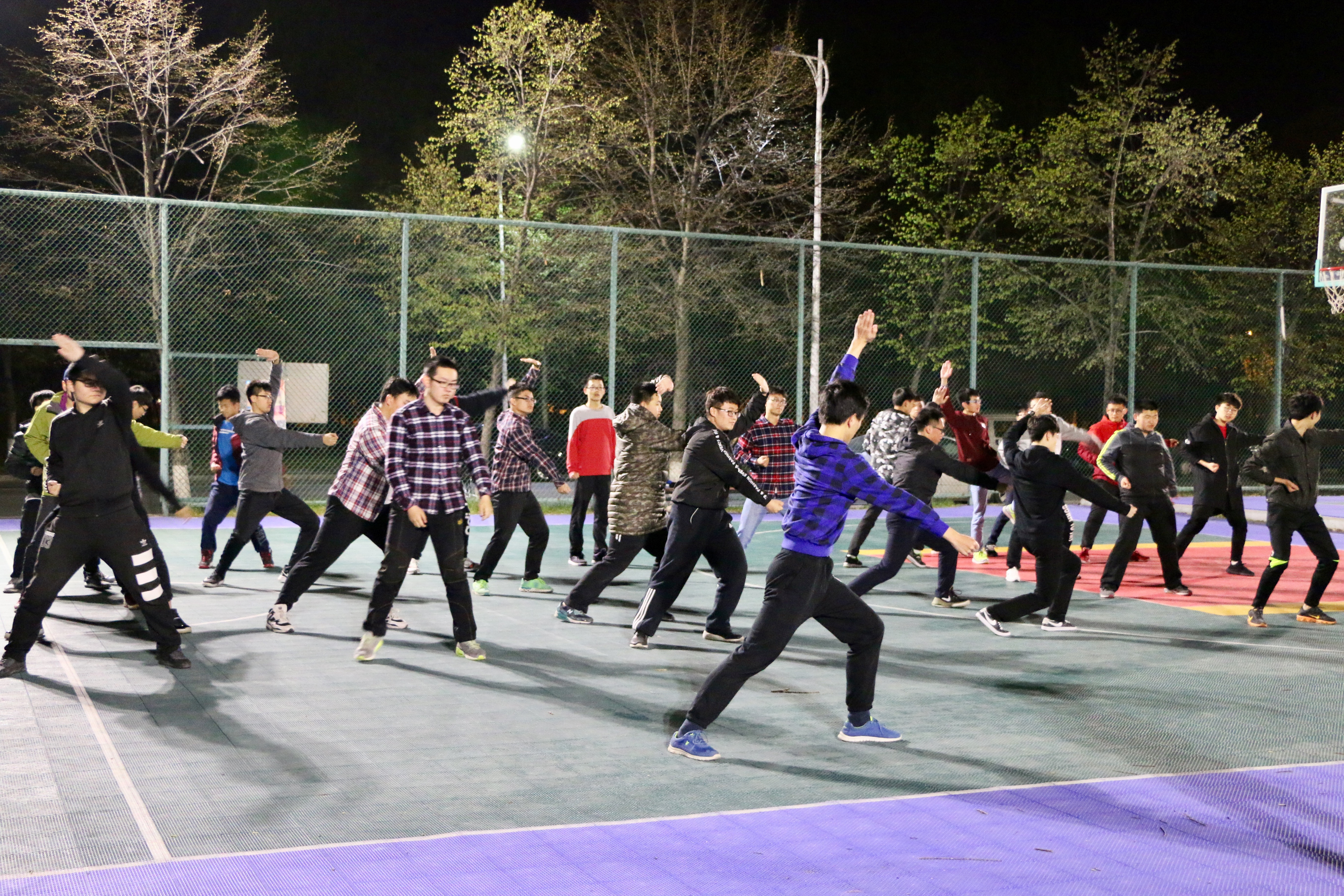 于2017年4月27日晚9:20在体育馆东侧篮球场展开三路长拳的训练工作。