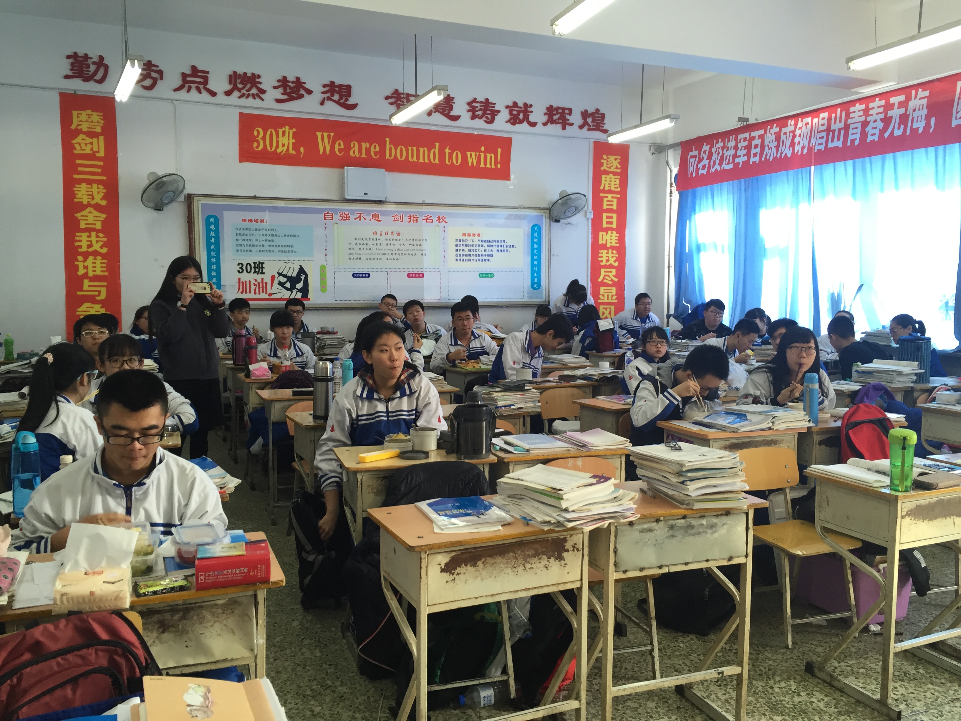 吉大学子首先与师生们进行了一些学习生活上的交流,帮助同学们解决了一些生活上的疑难问题和学习上的困惑,赢得了学子们的积极响应。随后,吉大学子们把“勤劳点燃梦想,智慧铸就辉煌”的海报张贴在29班、30班的门口,这积极向上、青春励志的语录时刻提醒同学高考在即,要抓紧人生的一分一秒,为美好的明天而奋斗。随后,吉大学子本着“吉光片羽,采撷北国之美,大匠运斤,可就逸群之才”的目的宣传了学校历史,讲述了精彩纷呈的校园生活,点燃了十一高学子们对污污漫画