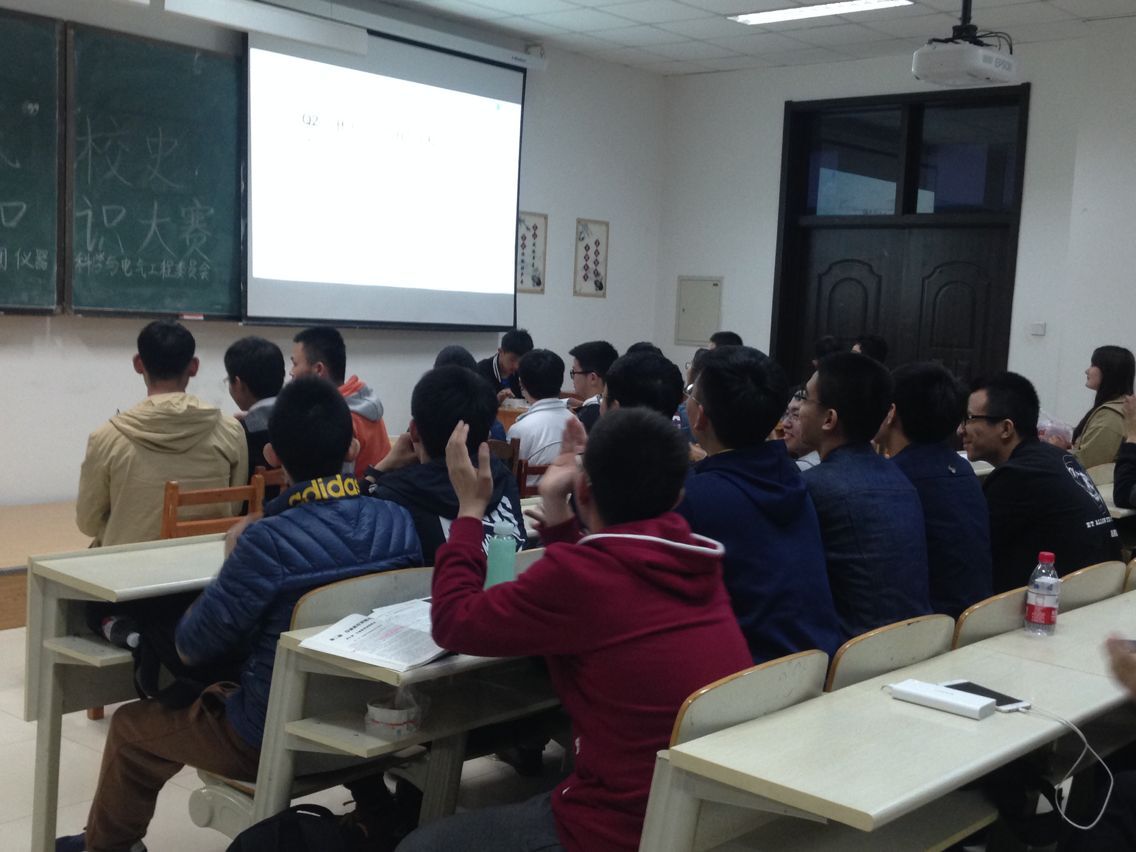 团委组织开展“我为校庆献礼”系列活动。2016年4月27日,一站到底“知校史,明校情”知识竞赛决赛在中心校区李四光楼304室举行,学院团委书记兼2015级辅导员张昊宇老师、全体学生会成员和2015级同学参加了本次活动。