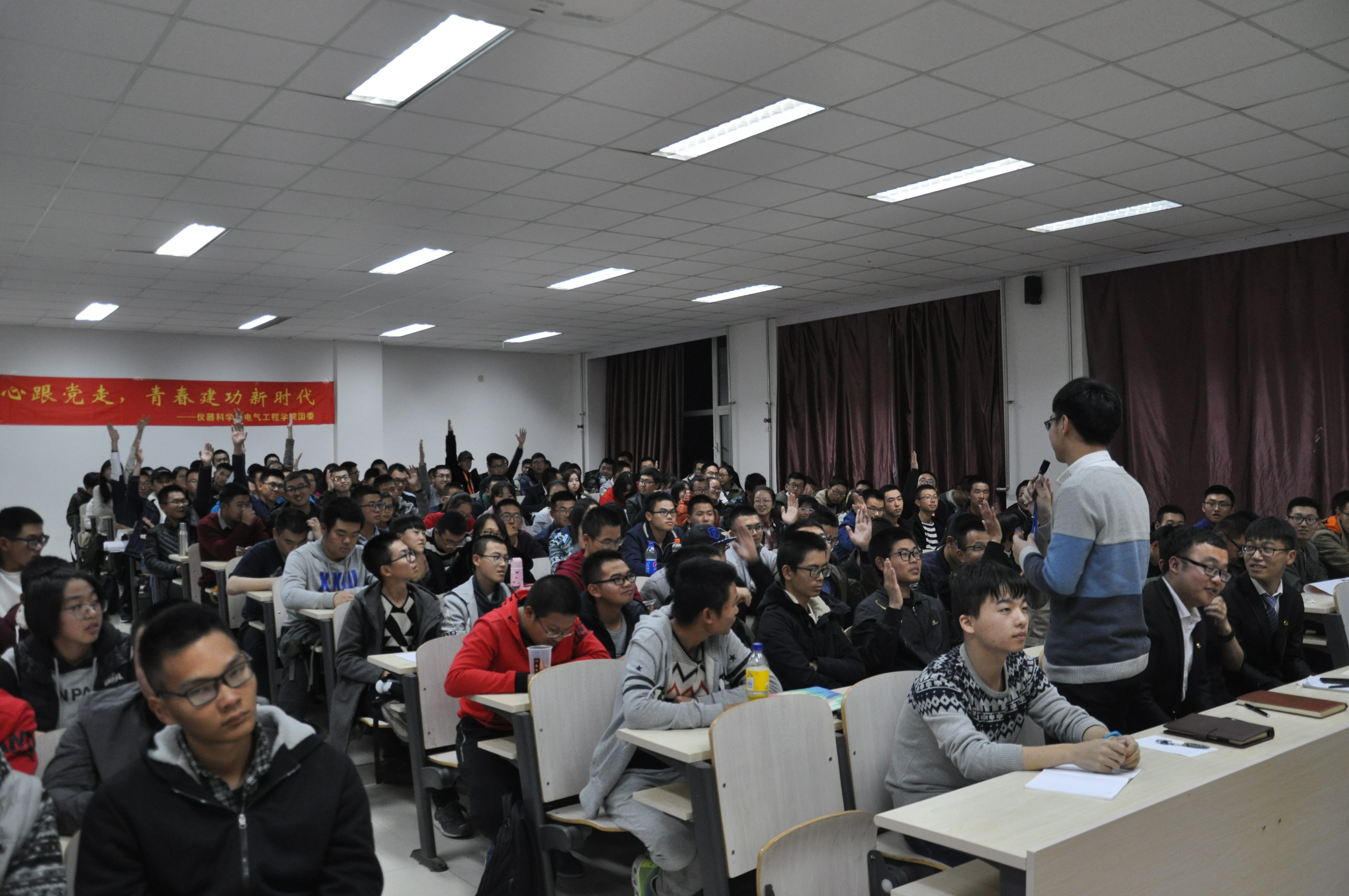 最后是有奖竞答环节,学院围绕十九大报告内容设计的问答题涉及我国政治、经济、文化、科技、教育等多个方面。同学们积极踊跃地回答问题,参与讨论,展现出了他们对十九大精神的学习成果。学院精心选择了《习近平的七年知青岁月》、《中国近代史》、《平凡的世界》等优秀书籍作为奖品鼓励学生。