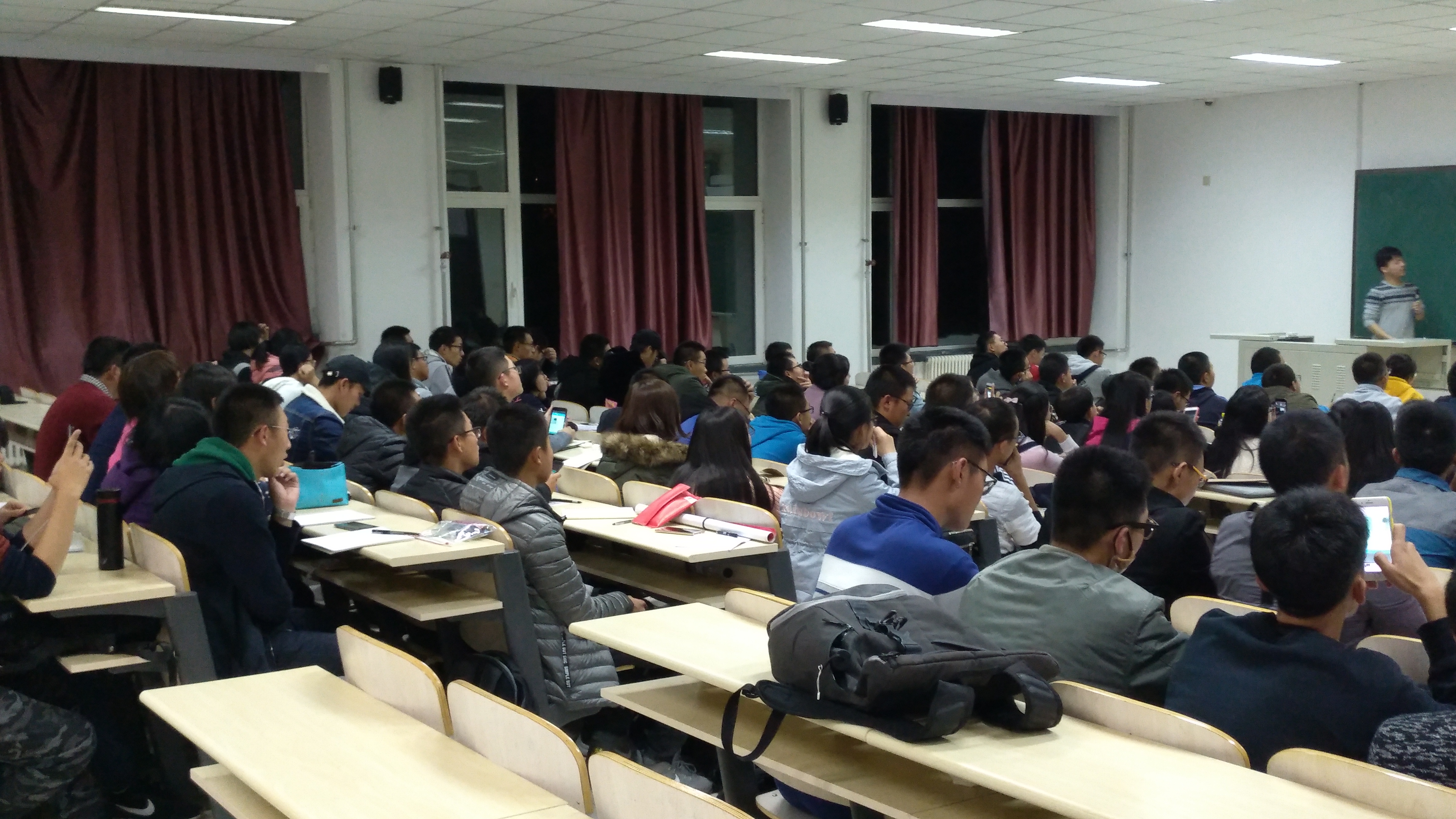 在千承辉老师介绍了培训安排并做了简单动员之后,培训正式开始。首先,龚善超同学对大家进行了基础内容的培训,包括基本元器件及电烙铁的使用方法,让2017级同学们对常用的元器件有了初步的了解,并为实际焊接操作打下了一定的理论基础。在培训过程中,同学们全神贯注,认真地做笔记,体现出2017级新生认真负责的学习态度。培训结束后,2017级同学针对培训中的不懂的地方跟龚善超同学进行面对面的交流,现场同学们热情高涨,讨论异常激烈。随后所有同学到李四光501教室参观2016级同学的机器人比赛,参观过程中,大家不停地喝彩,兴趣盎然,体现了他们旺盛的求知欲。