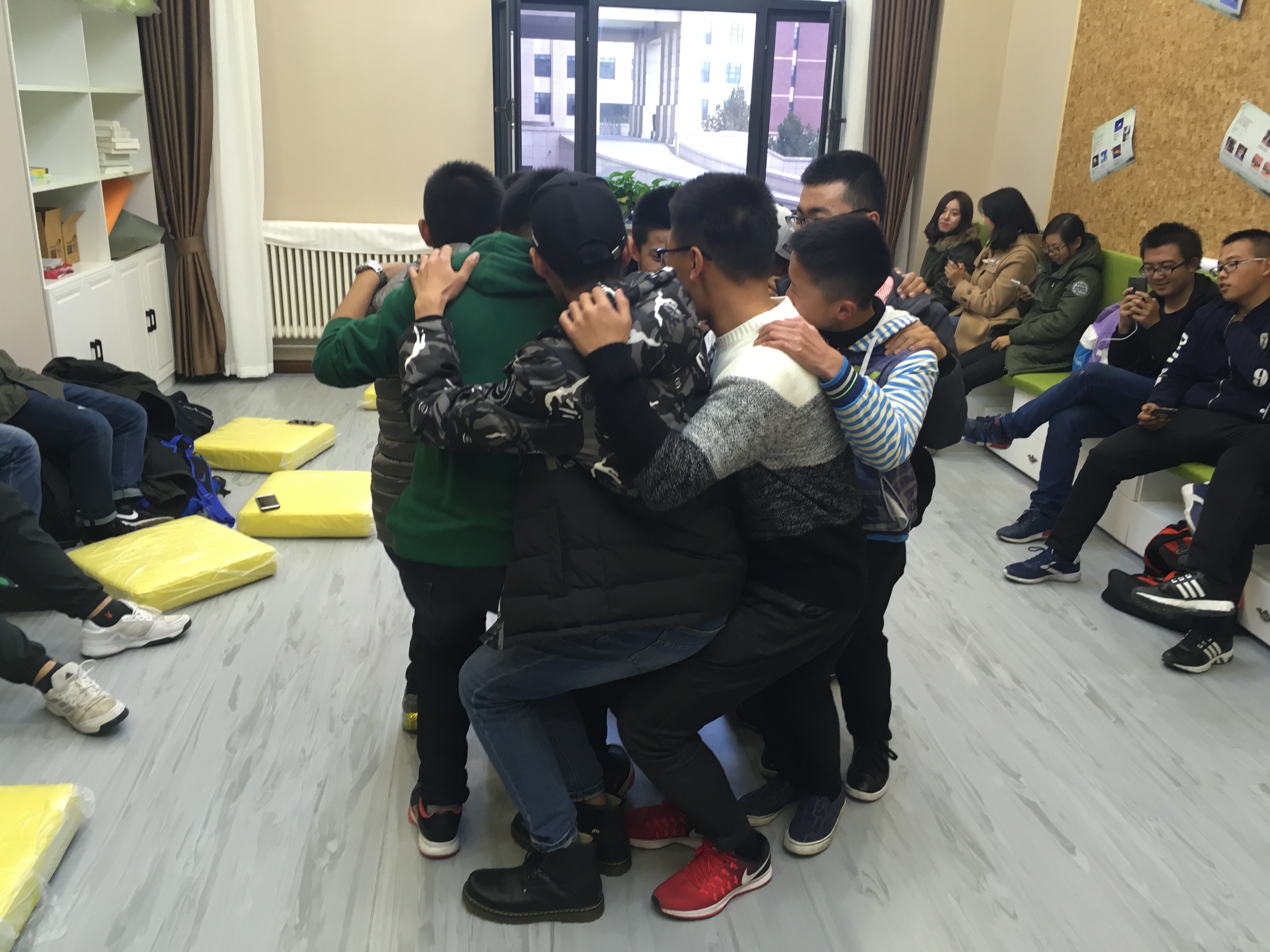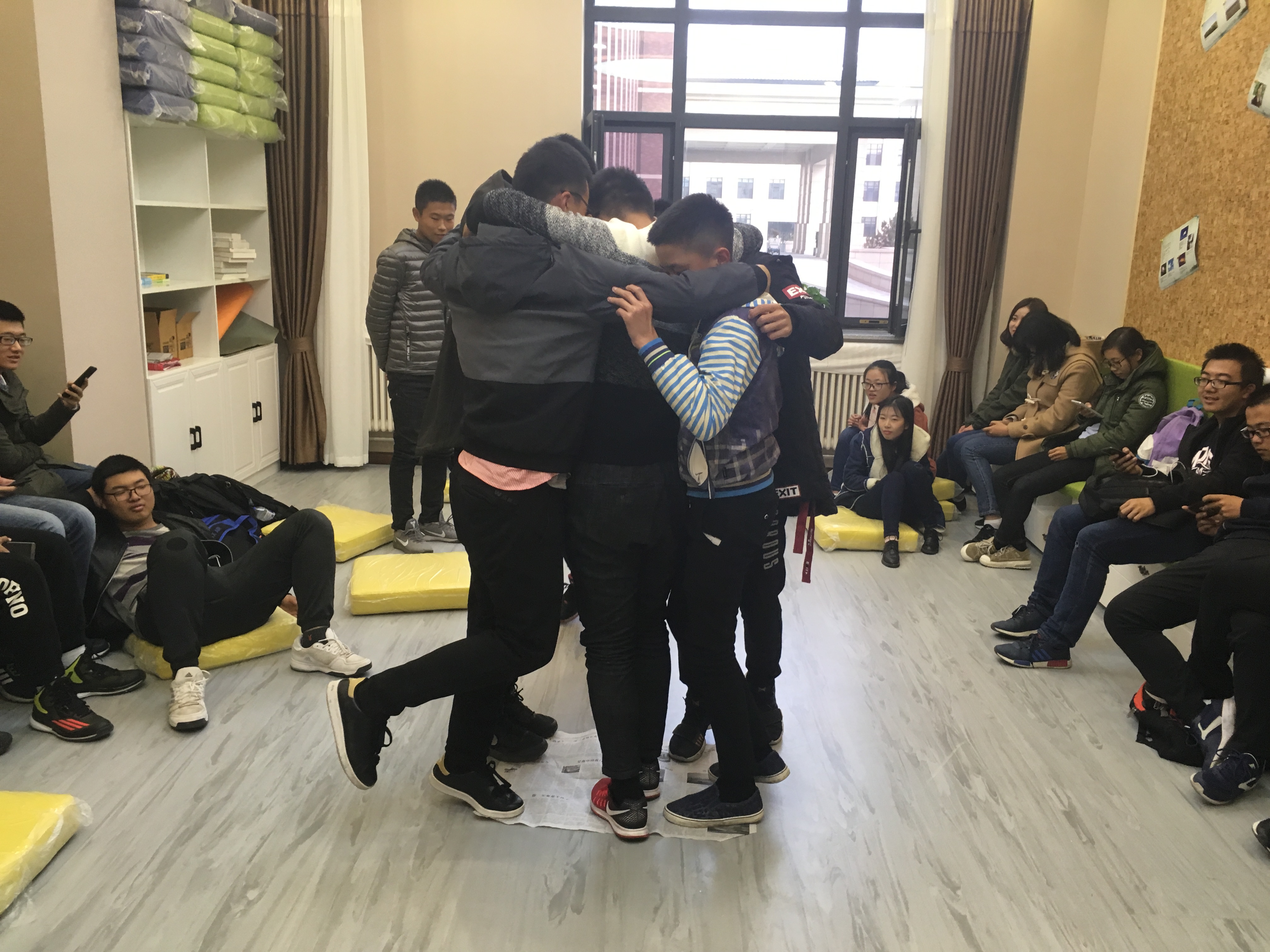 主持人在介绍了这次团体活动的主题、目的和内容后,带领大家做了几个有趣的心理游戏。第一项游戏是“一分钟鼓掌”,即估计自己一分钟的鼓掌次数并比较自己估计的次数与实际的差异。大部分同学都惊奇地发现,自己的实际情况与预想有较大差异,而该游戏的目的正是告诉大一新生要客观分析自己的状况,给自己设定合理的目标。随后进行的游戏是“集体登陆”,主持人将全班同学分成三组,在规定的三分钟时间内要求每组的成员全部站在各自组的报纸上。同学们做该项游戏的时候都十分紧张、激动、兴奋,该游戏极大地活跃了气氛,也锻炼了同学们互相协商的能力。而后大家还进行了“人椅破冰” “信任之旅”和“我知道”三项游戏,这些活动帮助大家更好更快地融入集体。在活动的最后,全班同学在画纸上画了一棵代表内心梦想、期望的“团体树”,大家的每一笔都小心翼翼,希望能画出最成功的作品。画完后同学们还在树上贴上了代表梦想的小纸条,缤纷的色彩装点了大家的大学之梦。