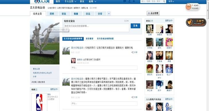 此次活动以“ 我运动,我健康;我快乐,我阳光”为主题,分为三部分进行。第一部分:利用微博、人人网等新媒体平台发布“健康吉大”系列活动信息,推选出各种有益于健康生活的体育运动并对广大师生们进行培训和指导,让更多的同学在自己热爱的运动中不仅能收获快乐,更能获得健康。此外,也有许多班级团支部在官方微博上与班级同学分享一些关于饮食、起居、学习等方面的良好生活方式。第二部分:将最受广大师生认可的健康生活方式推荐给同学们,同时列出健康咨询专家意见,提出健康生活方式并向全校推广,使全校师生都能积极的参加到活动中。我们时刻关注微博、人人网上的相关动态,快速地对广大师生们遇到的问题给出回答与建议。第三部分:建立篮球、足球、羽毛球、毽球等各种体育活动的QQ群、微博群,让更多的同学在自己喜欢的运动群里面交流运动经验、心得、体会与收获,以此活跃校园文化氛围,培养同学们积极的精神风貌和健康的生活方式。
