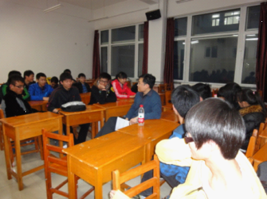 在同学们热烈的掌声中,王言章老师来到了教室,同时交流会也拉开了帷幕。会上,651101班班长赵美聪同学首先向老师汇报了班级上一学期的学习情况和同学们最近的学习生活动态。王老师针对以上情况给出建议,希望同学们本学期将更多的精力放在学习上。之后,王老师与同学们悉心交谈,倾听同学们的心声,给同学们指引方向。其间,同学们谈自己来到大学最初的理想、目标,现在的实现情况,以及今后的想法。王老师幽默地称话题为“昨天、今天、明天”,同学们积极发言,气氛非常活跃。同时,同学们提出了一些关于就业方向、读研与工作的选择等问题,王老师都依次做了详细解答,并提出在重视专业课程的同时,也要关注其它基础学科。此外,王老师还向同学们详细介绍了“六个一”工程,并鼓励同学们动手实践。最后,在同学们的掌声中班导师交流会画上句号。