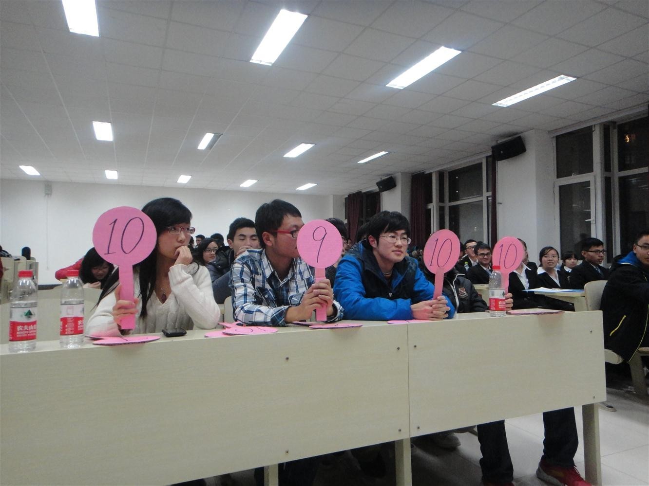 此次比赛采用积分排名制,共分为三个环节:征文展示、才艺表演、即兴演讲。首先,由各位选手上台进行为时五分钟的征文演讲展示,选手们结合自己制作的精美而富有感染力的PPT幻灯片进行了精彩的演讲,展示了各自良好的演讲水平和明确的人生规划。之后,选手们向评委及观众展示了丰富多彩的才艺表演,同学们有的携手搭档演奏吉他,有的献上歌曲,有的朗诵诗歌,还有的表演手语等,全场掌声阵阵,气氛被推向了高潮。两个环节后,有部分选手得分相同,又添加了附加赛环节,要求得分相同的选手随机抽取话题,经过短暂的准备后上台进行30秒钟的即兴演讲。这充分考验了选手们的综合能力和现场发挥能力,虽然时间紧迫但选手们仍思维敏捷,表现出色。经过三个环节紧张激烈的较量,最终2012级仪电二班白杨获得了本次比赛的冠军,评委们分别为获奖的同学们进行了颁奖。活动最后,学生会宣传部部长裴利然同学总结了本次比赛,她对选手们的出色表现表示了认可,并简要说明了举办这次比赛的目的和意义,她希望同学们通过这次活动都能认真合理地思考大学生活,更好地规划自己的人生。决赛共持续了两个多小时,现场气氛十分活跃,观众热情高涨。