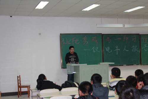 2011年度“十佳大学生”黄廷哲同学、免试推荐清华大学研究生(直博)的2009级王春泽同学及免试推荐哈尔滨工业大学硕士研究生的林展汐同学作为嘉宾,为学院2012级全体新生做了一场别开生面的事迹报告会。