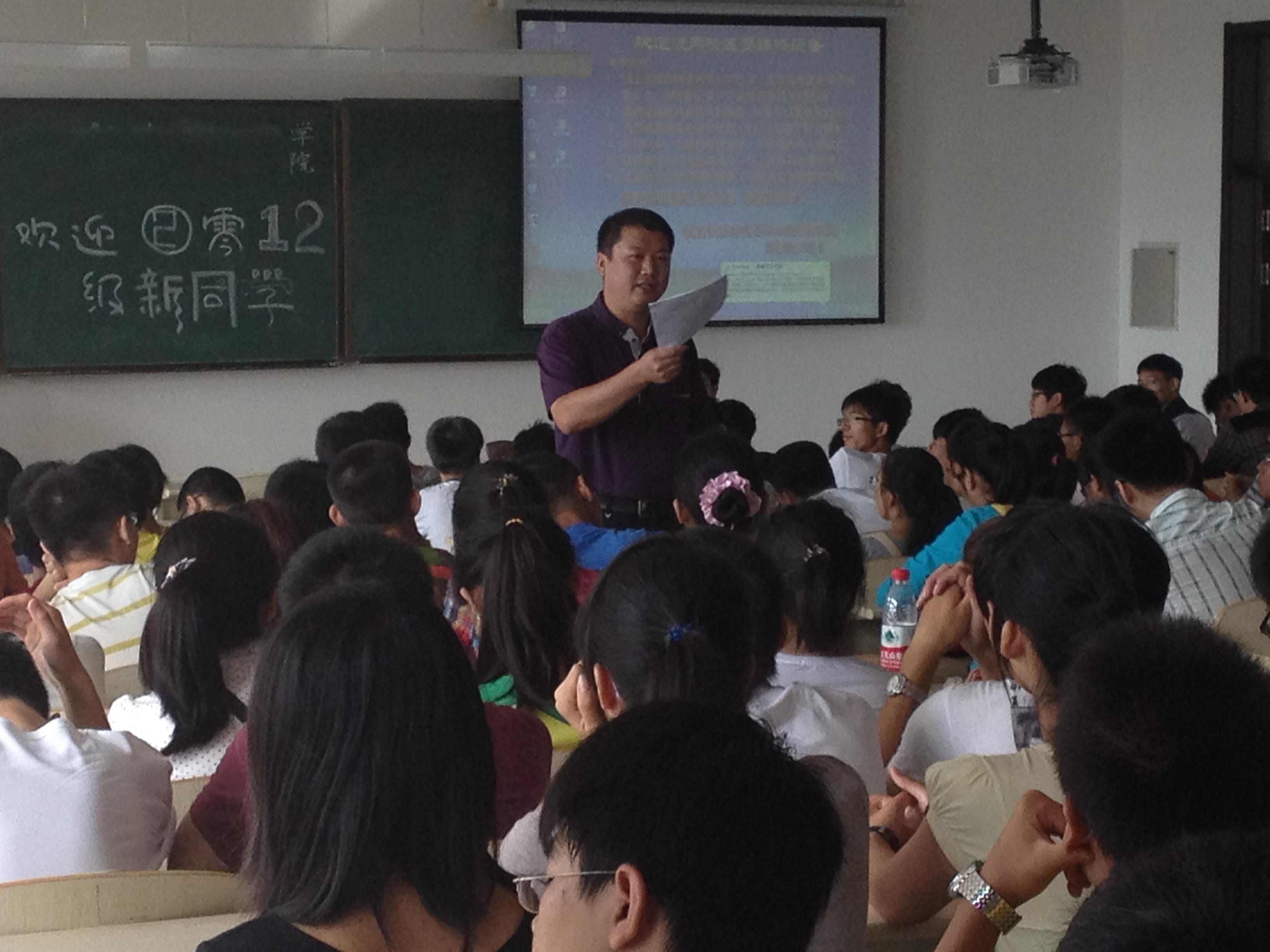 讲座上,邱书记首先向同学们介绍了学院的整体情况,使同学们对学院有了一定了解,让同学们能够更快更好地融入大学新生活。接下来,邱书记进行了党团知识教育,强调了入党的重要性,并详细介绍了入党的各个环节,尤其强调了学习成绩对个人在党团内发展的重要性,让同学们明确了今后的目标,看清了发展的方向。之后,邱书记还详细介绍了学院团组织、分团委、学生会以及班委会的相关成员组成与选拔制度。随后,邱书记对学生奖学金以及学生贷款的来源与分配进行了讲解,激励新生们努力学习,认真做好学生工作,争取二者能够均衡发展。最后,邱书记重点强调了电脑的正确使用问题,要合理利用电脑,用之来进行学业学习和提升自我素质。