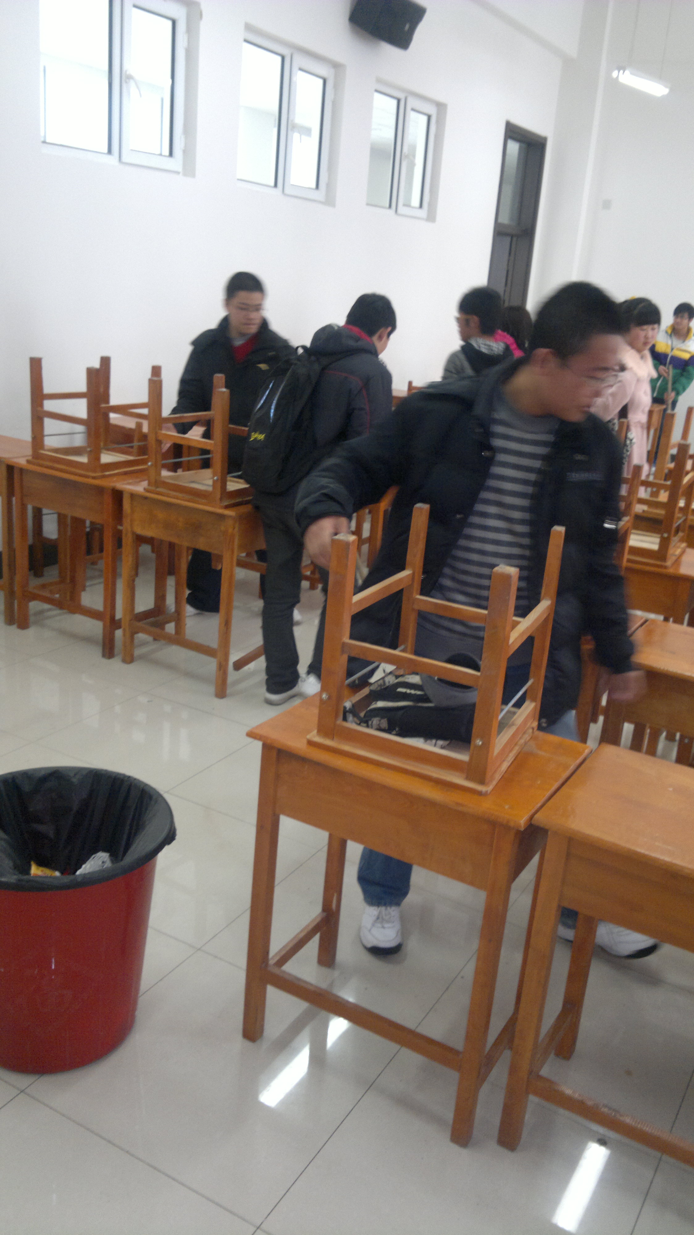 3月10日—11日,2011级3班全体同学在班级团支部的组织带领下,分别来到中心校区李四光楼一至三楼小教室,对教室内卫生进行清理,把教室内桌椅摆放整齐,将小教室内的卫生死角一一清扫干净。同学们任劳任怨、默默奉献的精神感染了在场的师生们,受到了大家的一致赞扬。