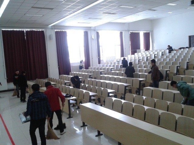 2011级6班团支部于3月11日组织班级同学开展了义务清扫中心校区李四光楼阶梯教室卫生的主题团日活动。