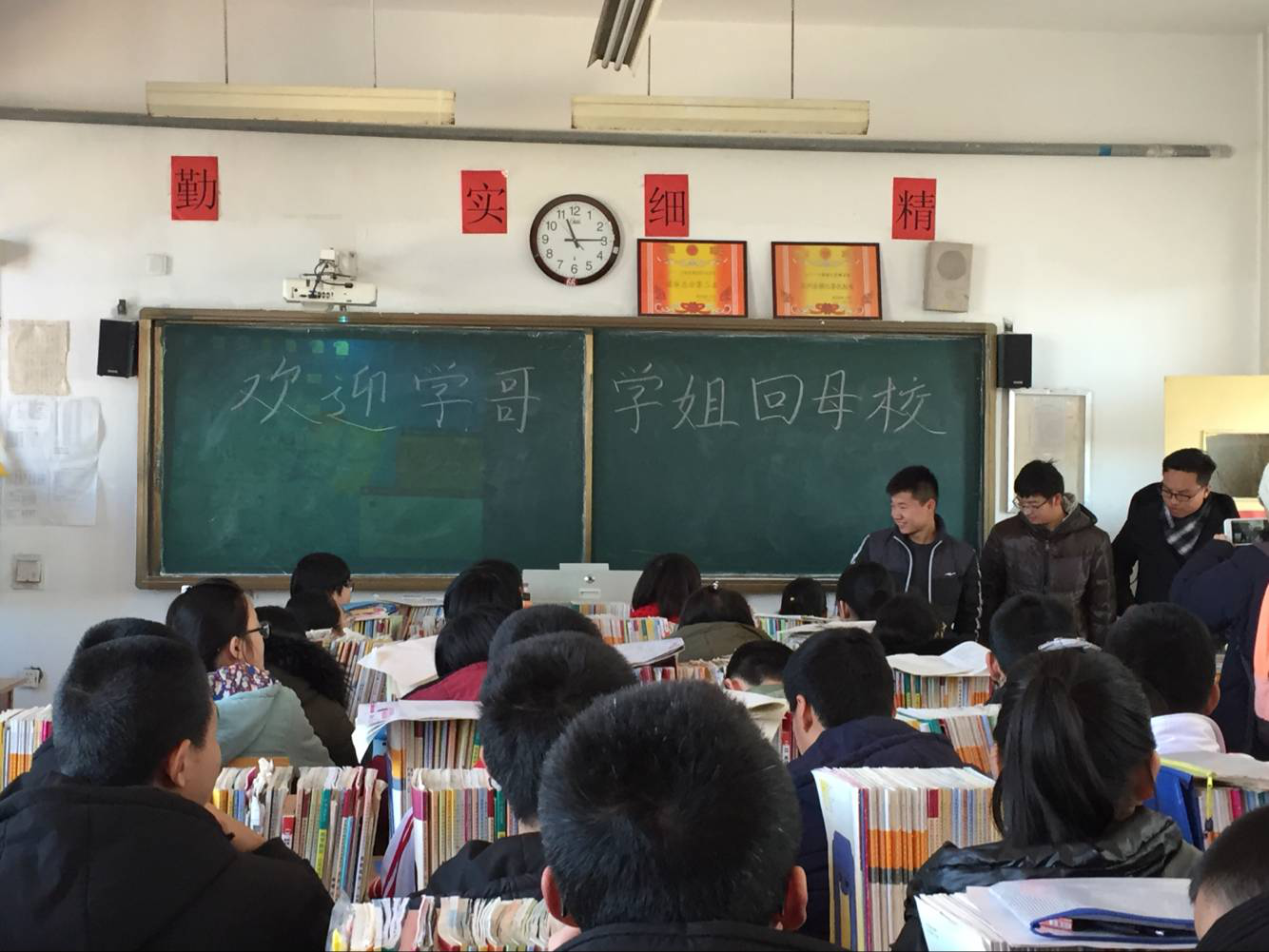 2017级的穆双双、范珍友、张筝、甄芮芮、昝兆平和侯立虎来到母校商河一中,在与张筝同学高中时期的班主任见面后,一行人进入到了高三学子们所在的教学楼,准备开展回校宣讲活动。
