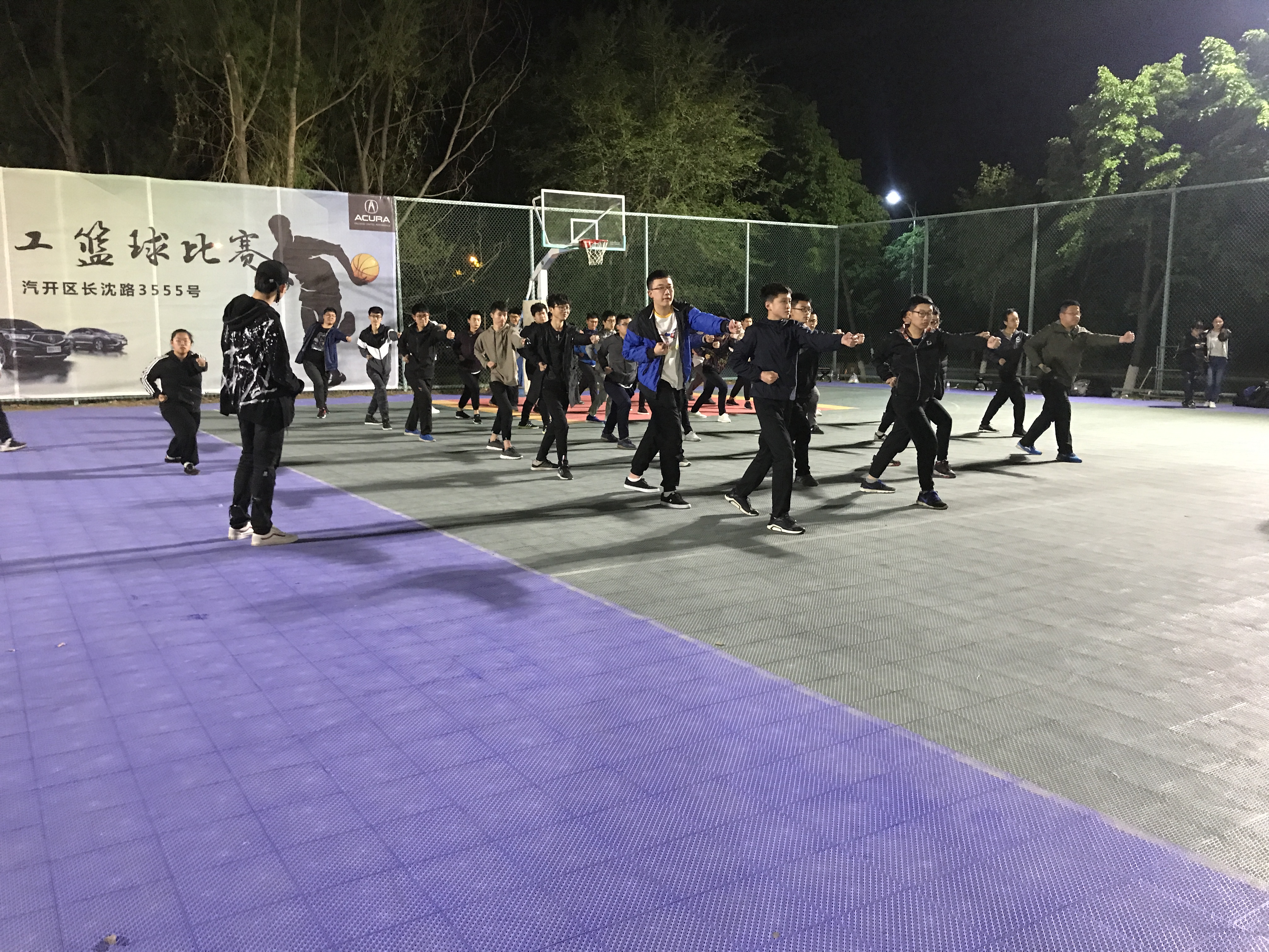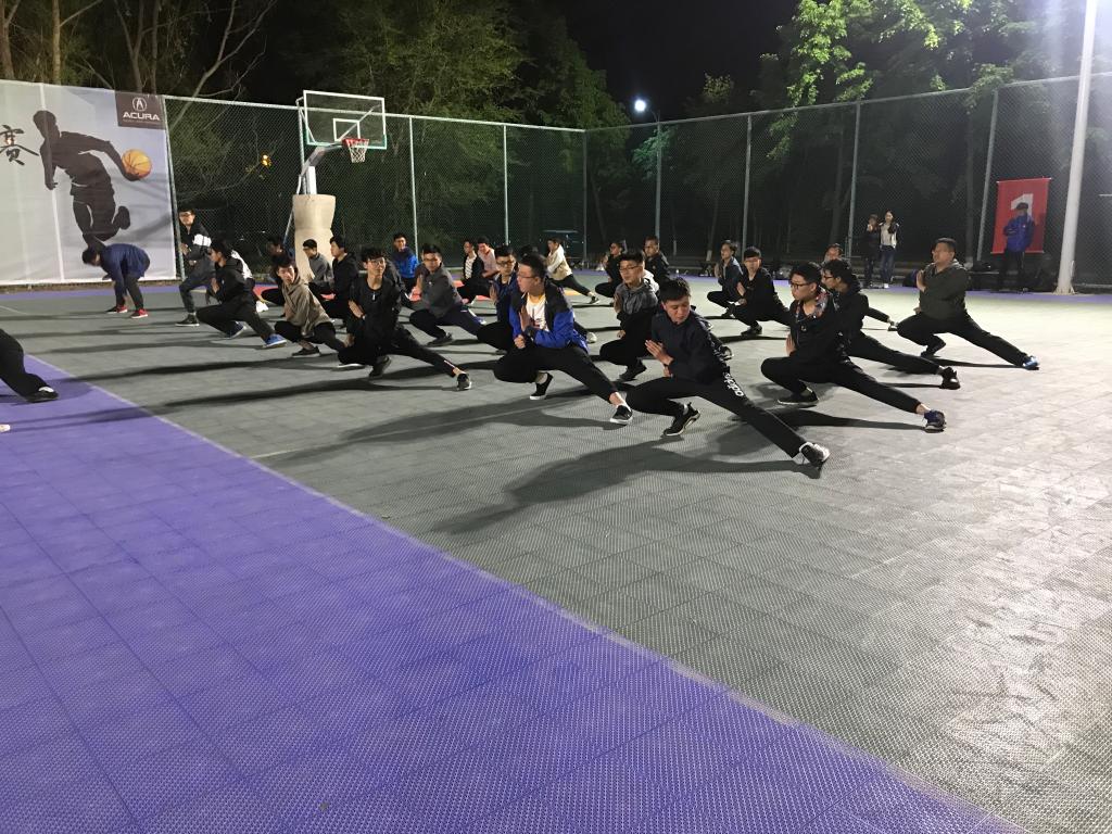 于2018年5月13日晚9:00在体育馆东侧篮球场展开三路长拳紧张有序的训练工作。