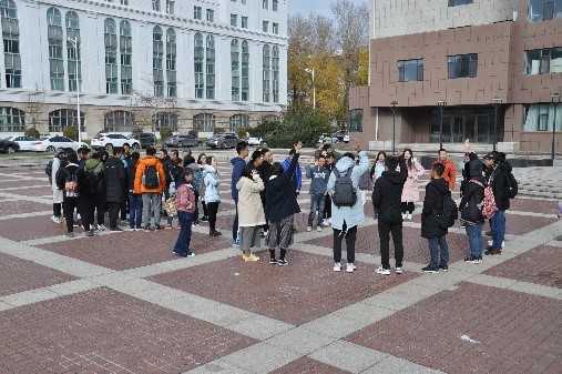 参观结束后,同学们离开校史馆,在鼎新楼门前开始进行最后一个游戏——背对背拥抱。这个游戏对同学们的团体协作意识有着很高的要求,只有齐心协力,相互扶持,一同发力才能顺利完成游戏。在游戏中,同学们团结一致,尤其是获得第一名的队伍,他们不断突破自我,一次又一次地获得了胜利。最后的奖惩环节更是令同学们笑声连连,受惩罚同学的方言台词使在场的每个同学都开怀大笑本次活动也在大家的欢声笑语中顺利结束。