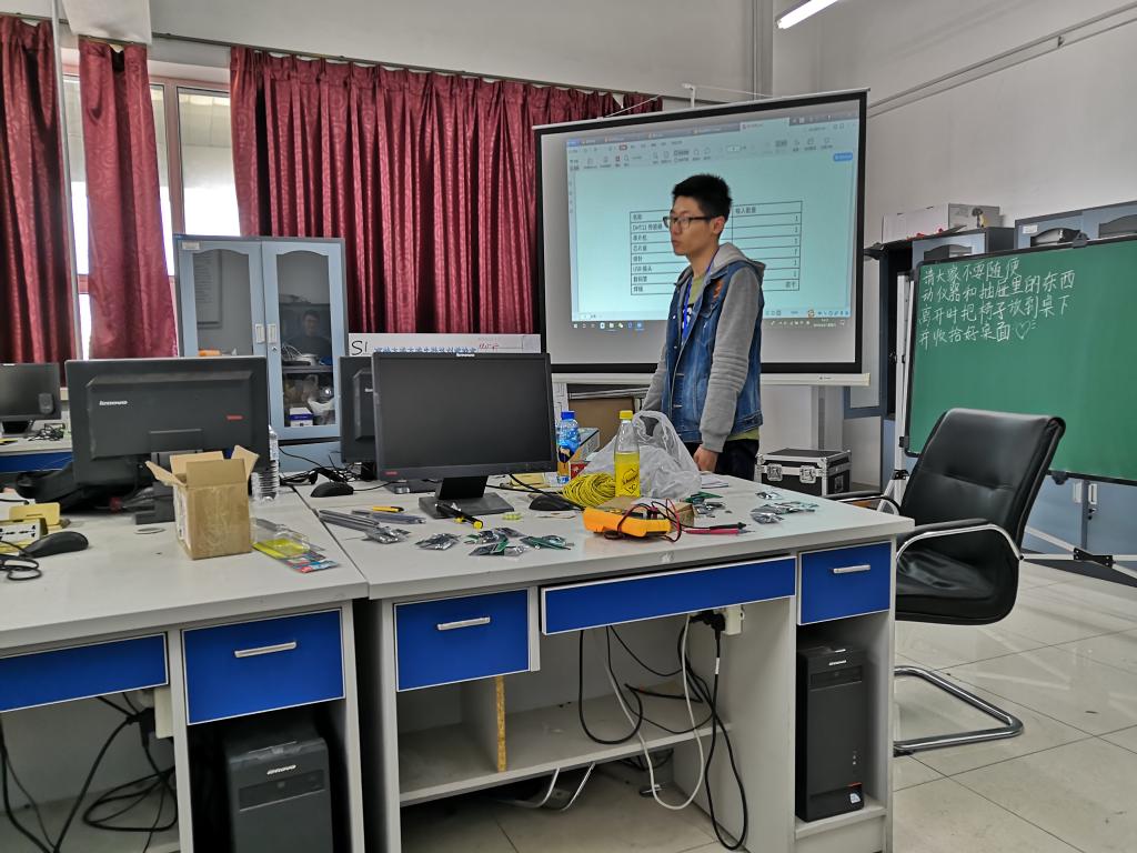 本次培训由滕泽远同学主讲。为保证制作过程的安全,在活动开始前滕泽远同学先宣读了实验室安全注意事项。活动开始后,滕泽远同学首先介绍本次活动所用器件及使用方法,随后为同学们展示活动成品,激发了同学们的兴趣。然后开始讲解作品的制作原理与电路结构,讲解过程中与同学们互动,调动了同学们的积极性。讲解过后,同学们开始亲自动手制作,志愿者从旁协助,解答同学们的问题,向同学们传授自己制作时的经验,现场同学们热情高涨,都希望能通过自己努力制作出实用的小作品。经过一下午的制作,所有同学们都完成了自己动手制作的作品。