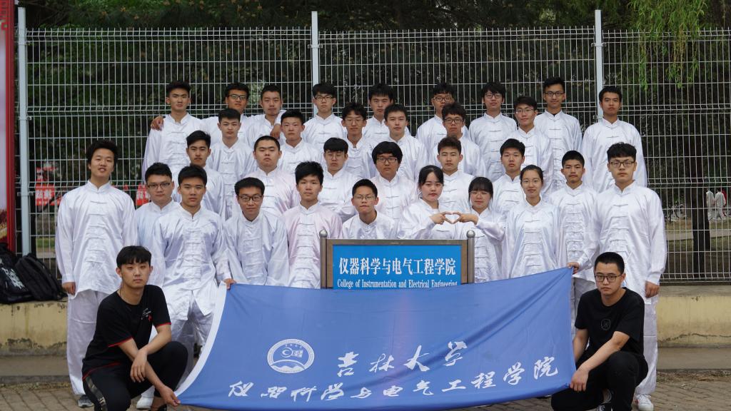 经过为期两周的培训,同学们已经能够完整熟练地完成整套太极拳,准备迎接比赛的到来。上午8:00,队员们在体育场内集合,回忆比赛流程和动作要领,做好赛前准备。仪电学院太极方队由32名队员和一名旗手组成,随着入场口令的下达,方队踏着整齐的步伐,喊着响亮的口号进入场地中央。在舒缓的音乐中,同学们动作舒展大气,节奏稳健,队伍整齐划一,充分展现了太极的柔和之美。