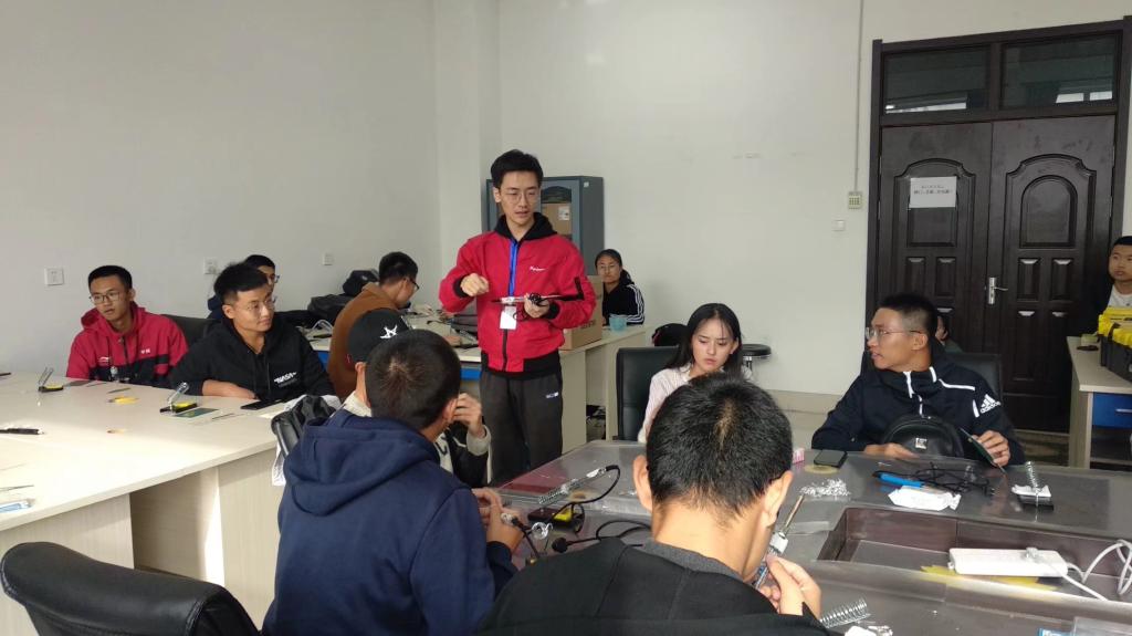 本次活动主要面向2019级学生,科协会长周原锐同学担任主讲。周原锐同学首先介绍本次活动所用器件,讲解基本电子元件的原理,并为同学们展示了焊接成品。随后,在2017级志愿者的协助下,同学们纷纷开始了自己的“焊接之旅”。遇到问题时,志愿者会从旁协助,耐心解答问题,最终,同学们都完成了自己的作品。在活动最后,志愿者组织同学们用焊接成品组成“新中国密码”——“15665 611612”。这串数字是歌曲《没有共产党就没有新中国》第一句旋律的简谱,蕴含着浓浓爱国情。