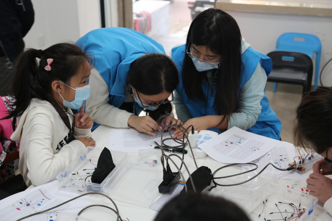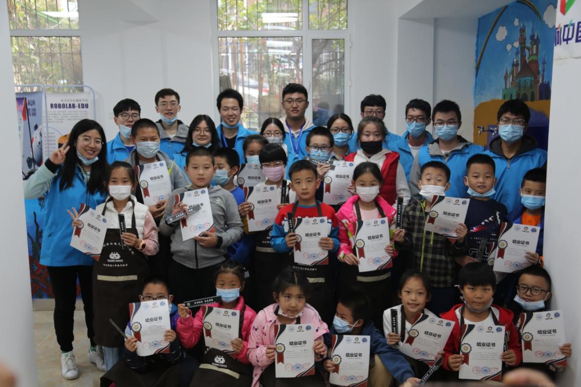 为激发青少年学习科学、探索科学的兴趣,启发青少年的创新思维,培养青少年的创新精神和实践能力,2020年10月8日上午9:00以及下午3:00,216+开放创新实验室联合污污漫画 大学生科技创新协会(以下简称科协)于西朝阳路吉林省大学生创新实践示范基地举办了“创响中国”系列——玩转“电子积木”活动。本次活动的志愿者由2017级卓越工程师班的学生和科协成员组成。在小朋友们和志愿者们的共同努力下,活动圆满举行。 活动准备前期,志愿者们在实验室积极认真地准备活动材料,并对相关材料进行检查,确保活动正常进行。小朋友们签到并入座完毕后,活动正式开始。首先,由志愿者张逸群同学为小朋友们介绍活动内容和活动的注意事项,将安全工作落实到位。随后,每个小朋友在志愿者的陪同下亲自动手制作“电子积木”。活动过程中,现场气氛和谐融洽,志愿者们全神贯注地进行教学,小朋友们认真专注地投入其中,最终小朋友们都通过使用NE555等元器件组建电路,成功地让LED达到了自动闪烁的效果。在制作结束后,志愿者们为小朋友们颁发了结业证书并与小朋友们合影留念,活动在欢声笑语中圆满结束。 此次“创响中国”系列——玩转“电子积木”活动,不仅丰富了小朋友们的课余生活,帮助他们拓展了兴趣爱好并锻炼了他们的动手实践的能力,也让志愿者们也体会到了服务社会、回馈社会的乐趣,收获了丰富的实践经验和理论知识,彰显了“吉大精神”,传递了社会正能量。