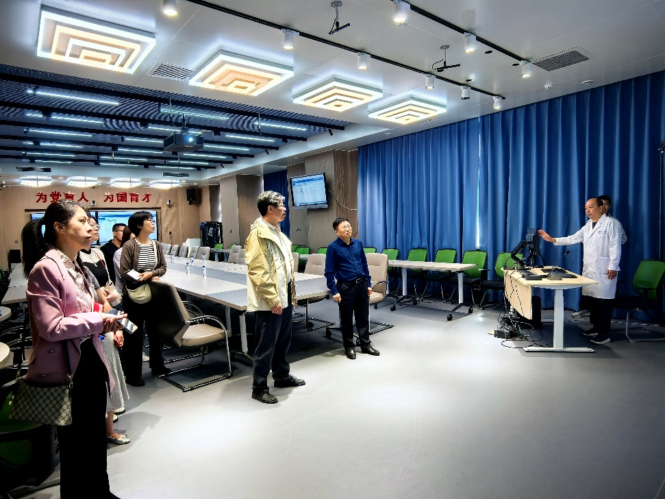 初步交流了解后,孟庆繁、孟令军等老师带领实验中心党支部全体党员同志,参观了中心档案室、配件室、智慧实验室、信息化管理室、大健康梦工场、教学实验室和中试实训基地等,并根据各个实验室的功能与特点详细介绍了中心建设、实践教学改革、实验教学队伍建设、实验室开放运行管理等情况与现状。