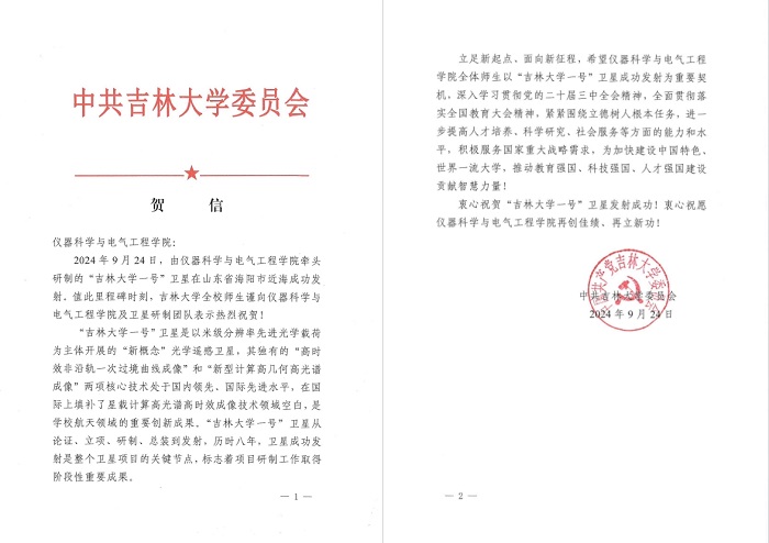 一号”卫星成功发射为重要契机,深入学习贯彻党的二十届三中全会精神,全面贯彻落实全国教育大会精神,认真学习学校党委《贺信》精神,紧紧围绕立德树人根本任务,进一步提高人才培养、科学研究、社会服务等方面的能力和水平,积极服务国家重大战略需求,为加快建设中国特色、世界一流大学,推动教育强国、科技强国、人才强国建设贡献智慧力量!
