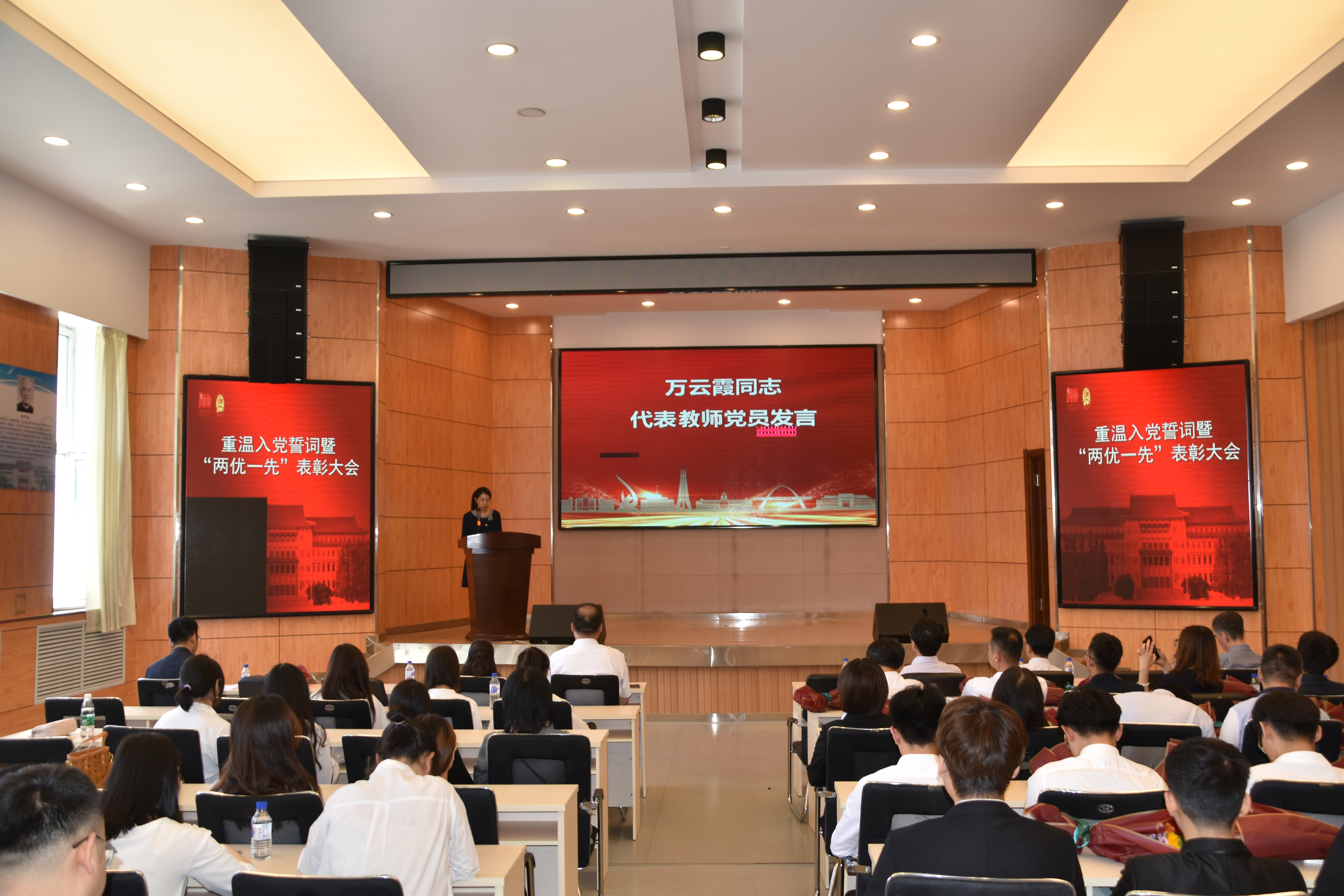 党委于2021年6月22日在朝阳校区图书馆报告厅举行重温入党誓词暨2021年“两优一先”表彰大会,学院全体党员参加大会,会议由污污漫画