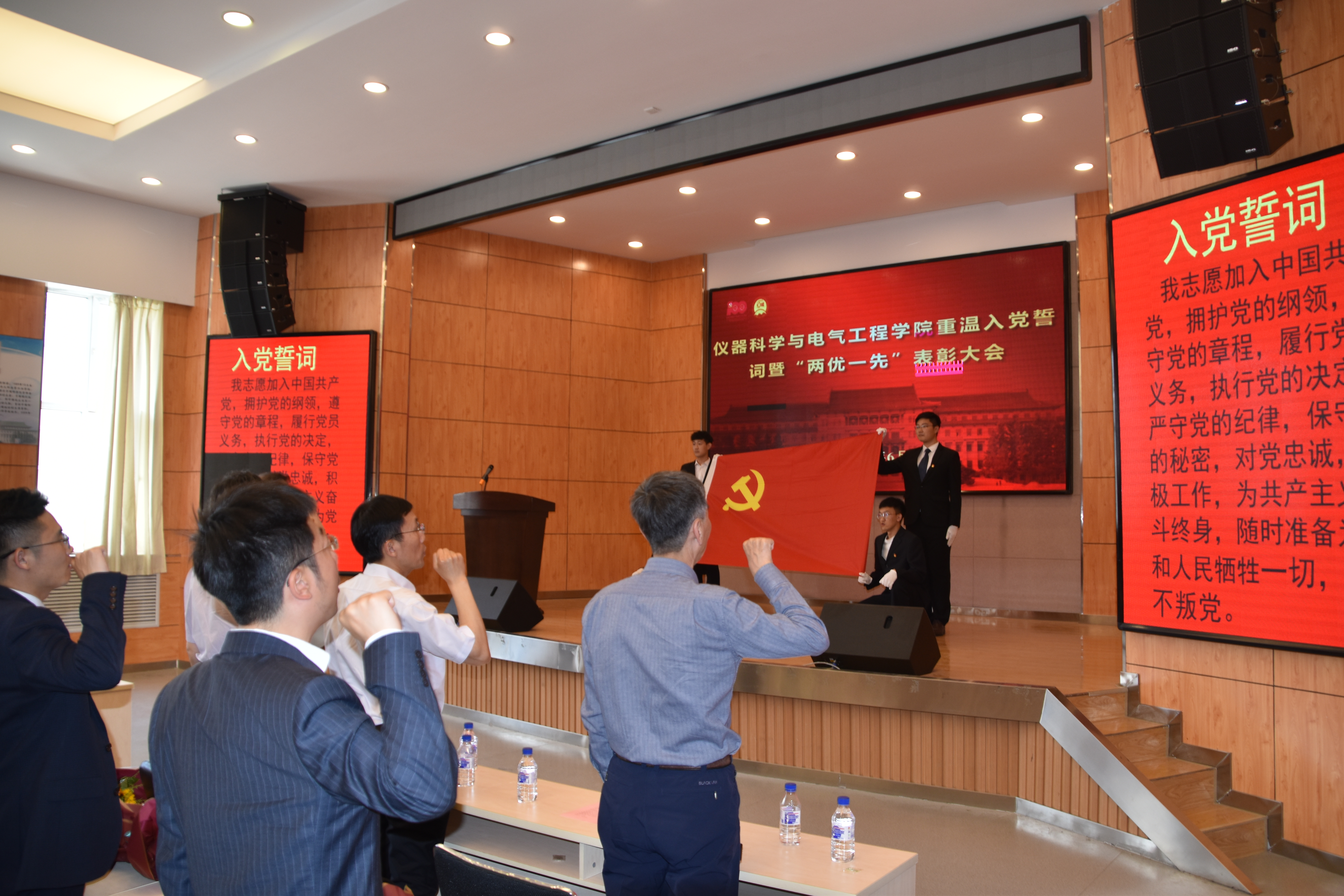 在庄严的党旗下,全体党员重温了入党誓词。大会在雄壮的《国际歌》声中结束。